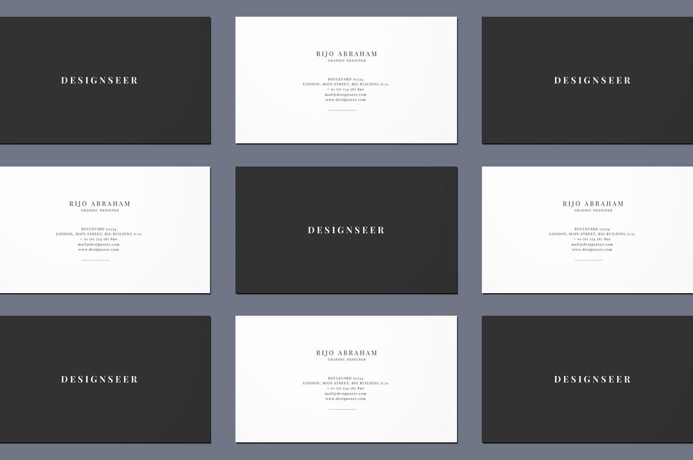 Add your business card design and see the magic of smart objects in action. Also easily change the background color, color filters and individually control the tile of cards as needed.